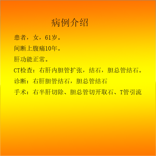 右肝胆管结石,胆总管结石---右半肝切除、T管引流